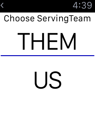 When you've determined who is serving first, tap "Them" or "US" to indicate whether you or your opponent has the first serve.